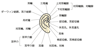 耳介は耳たぶの部分を除いて軟骨で出来ています。その働きは主に集音作用と方向感をつかむ事です。