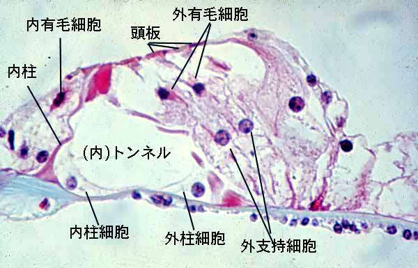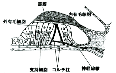 有毛細胞には内側に一列の内有毛細胞と外側に三列の外有毛細胞があり、それぞれに働きが違います。