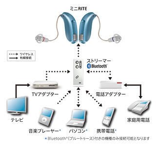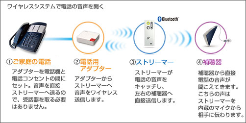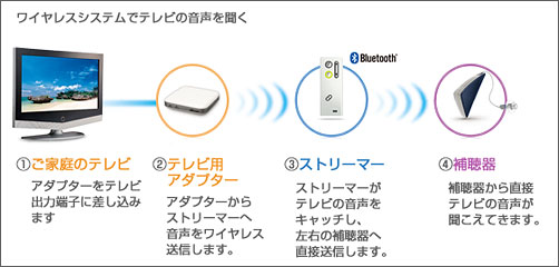 テレビの音声や音楽をワイヤレスで補聴器に届けます。 ![]() |